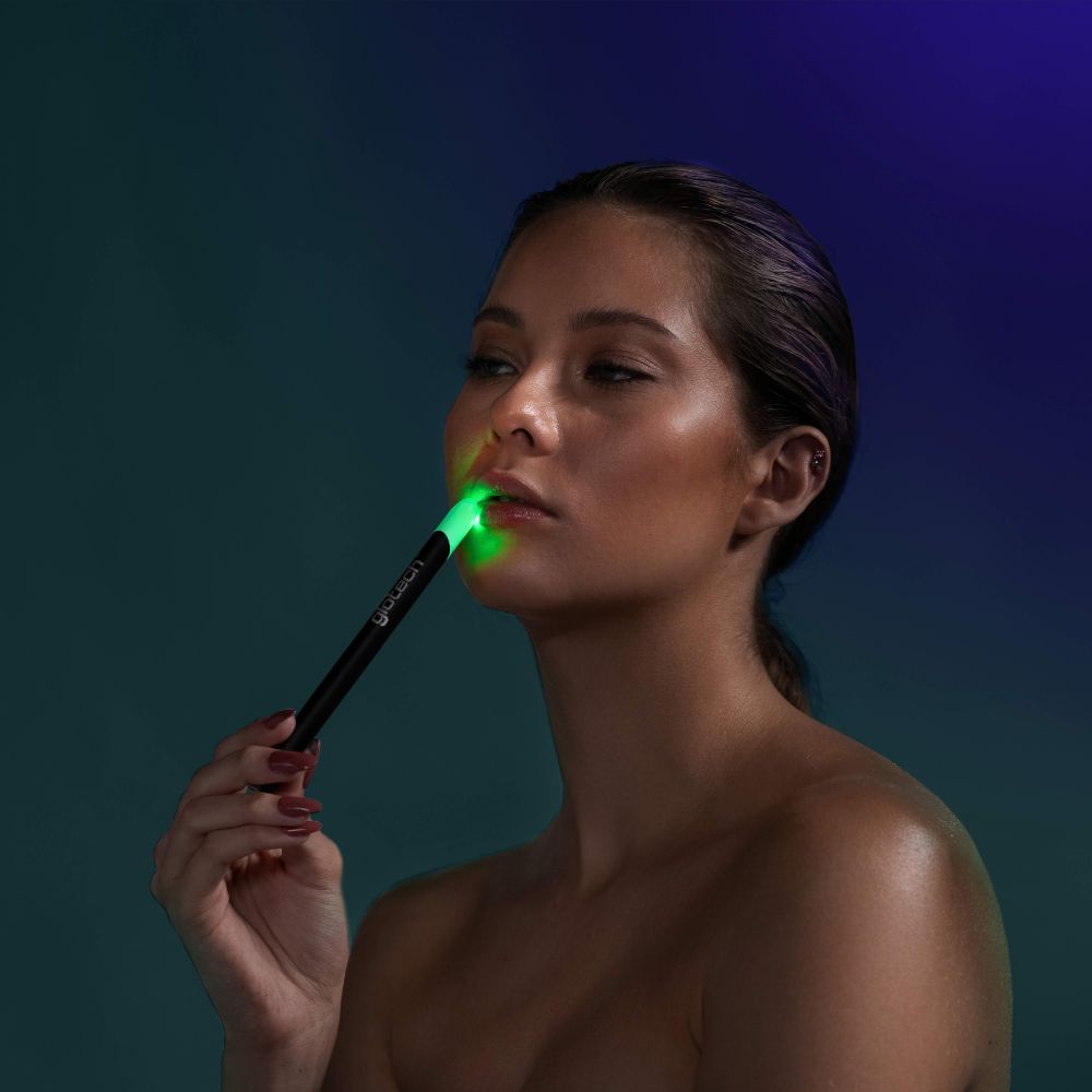 - Glide the wand back and forth over your lower lip for a full 3-minute treatment.