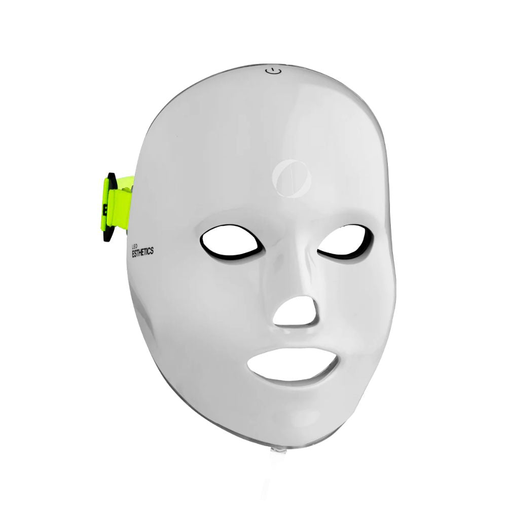 - The default mode is red light. To switch to blue light, short-press the button on the top of your mask.